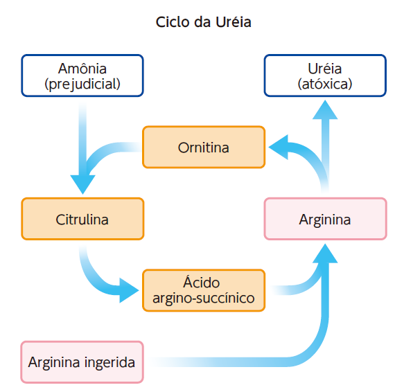 Para ser eliminada do organismo, a amônia passa pelo ciclo da ureia, onde é metabolizada no fígado e depois excretada. Como a Arginina age no ciclo da ureia, auxiliando no metabolismo que promove a desintoxicação da amônia, o aminoácido pode aliviar a sensação de fadiga (física ou mental) causada pela amônia.